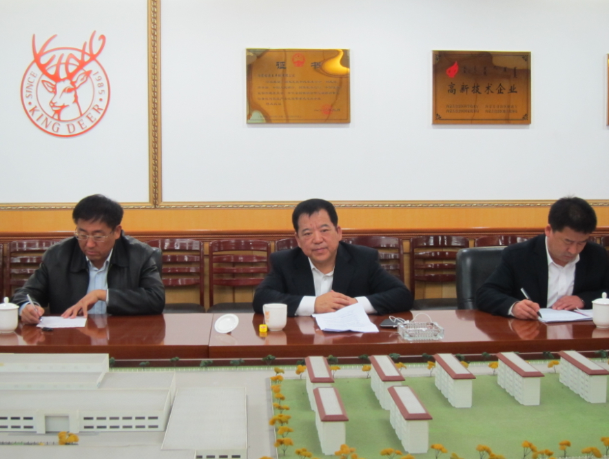林永亮常務(wù)副會(huì)長(zhǎng)、羊絨分會(huì)會(huì)長(zhǎng)王風(fēng)之、秘書(shū)長(zhǎng)魯耀武在鹿王羊絨有限公司參加調(diào)研座談會(huì)