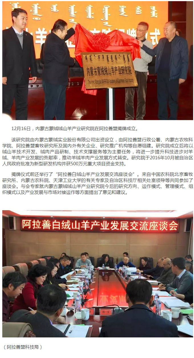 內蒙古蒙絨絨山羊產業(yè)研究院在阿拉善盟揭牌成立