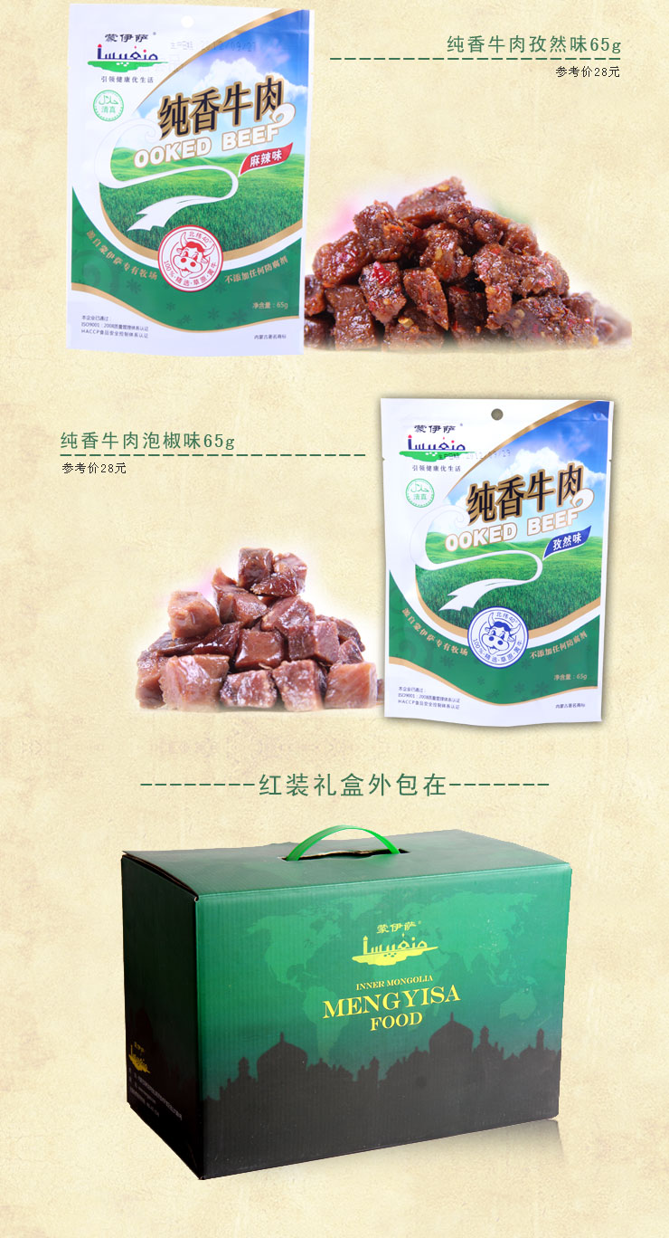蒙伊薩內(nèi)蒙古特產(chǎn)風(fēng)干牛肉干2013綠裝1171g高級年貨禮盒